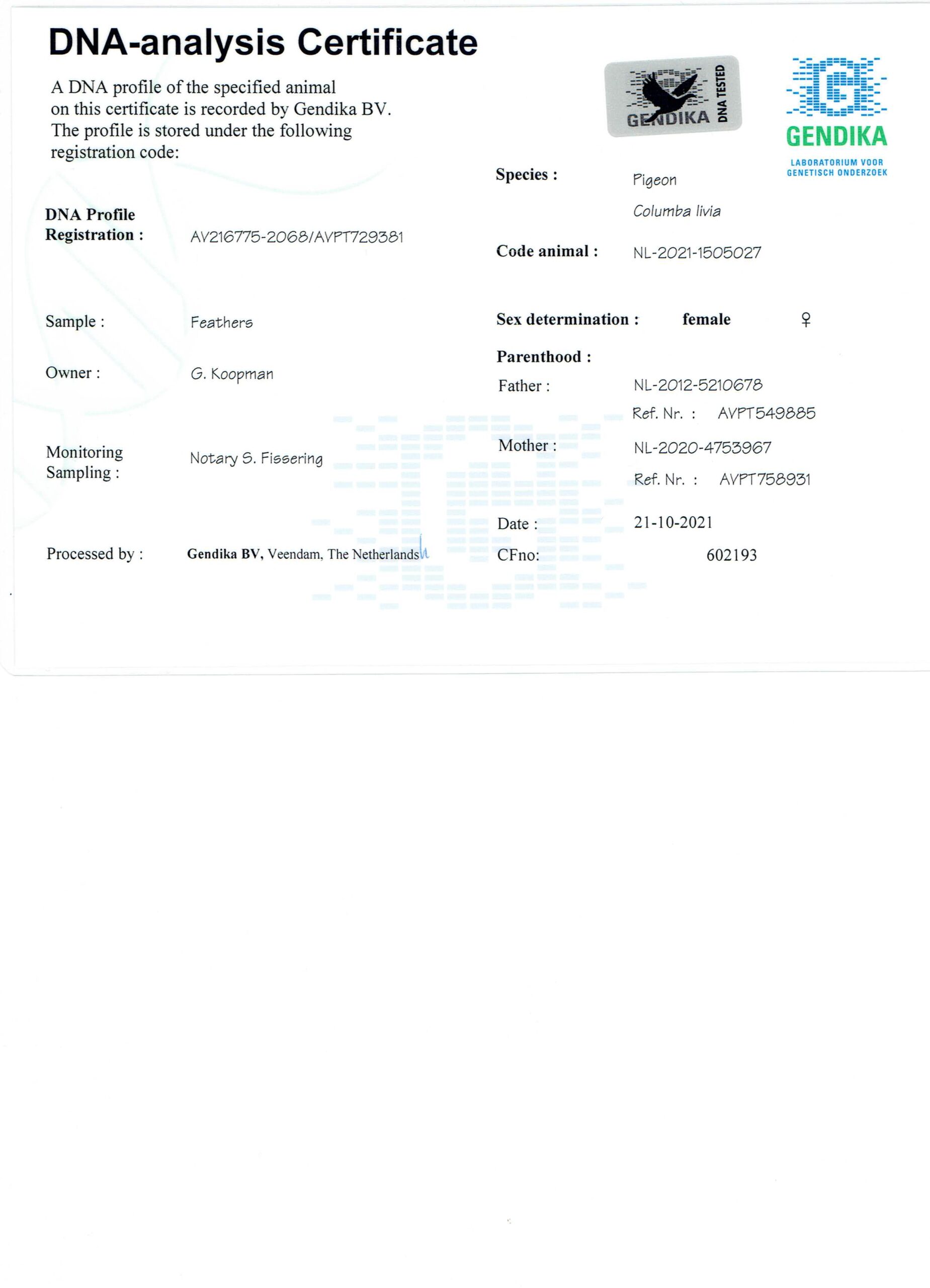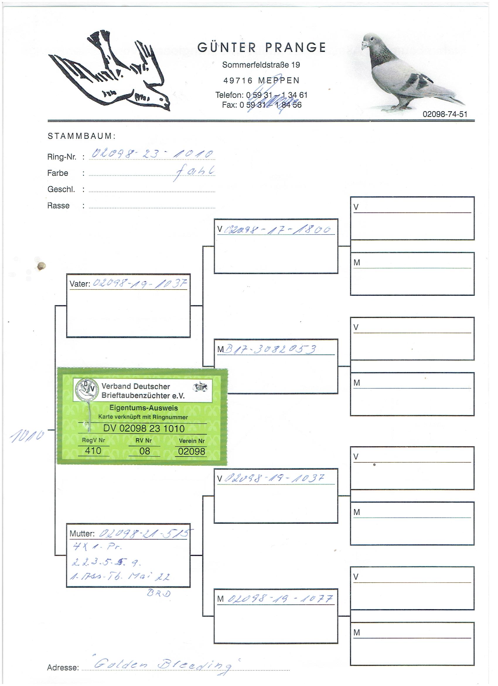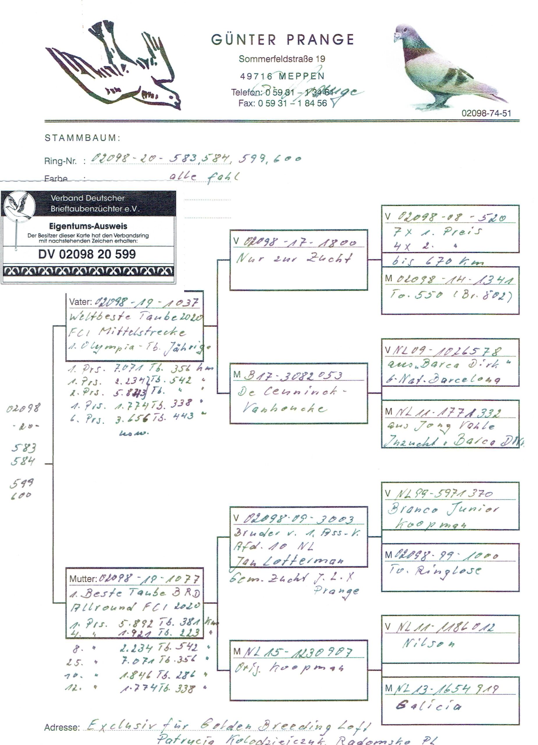 International Golden Breeding Loft – Gerard Koopman & Günter Prange